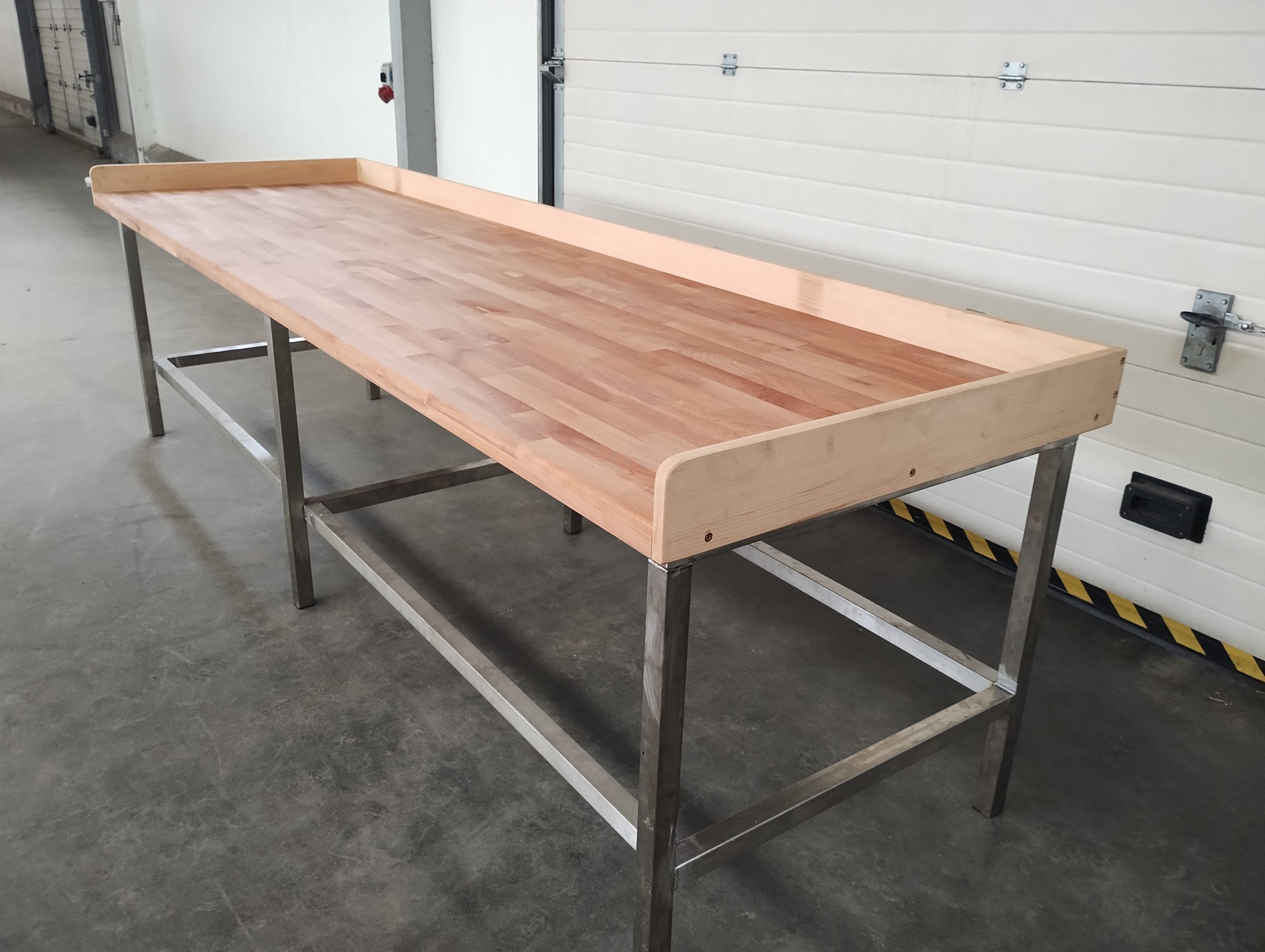 Oferujemy stoły robocze ze stali nierdzewnej z blatami bukowymi, zaprojektowane z myślą o intensywnej, codziennej pracy. Konstrukcja wykonana z wysokiej jakości stali nierdzewnej zapewnia trwałość, stabilność oraz odporność na wilgoć, uszkodzenia mechaniczne i działanie czynników zewnętrznych, dzięki czemu stoły doskonale sprawdzają się w zakładach produkcyjnych, gastronomii oraz innych środowiskach pracy.