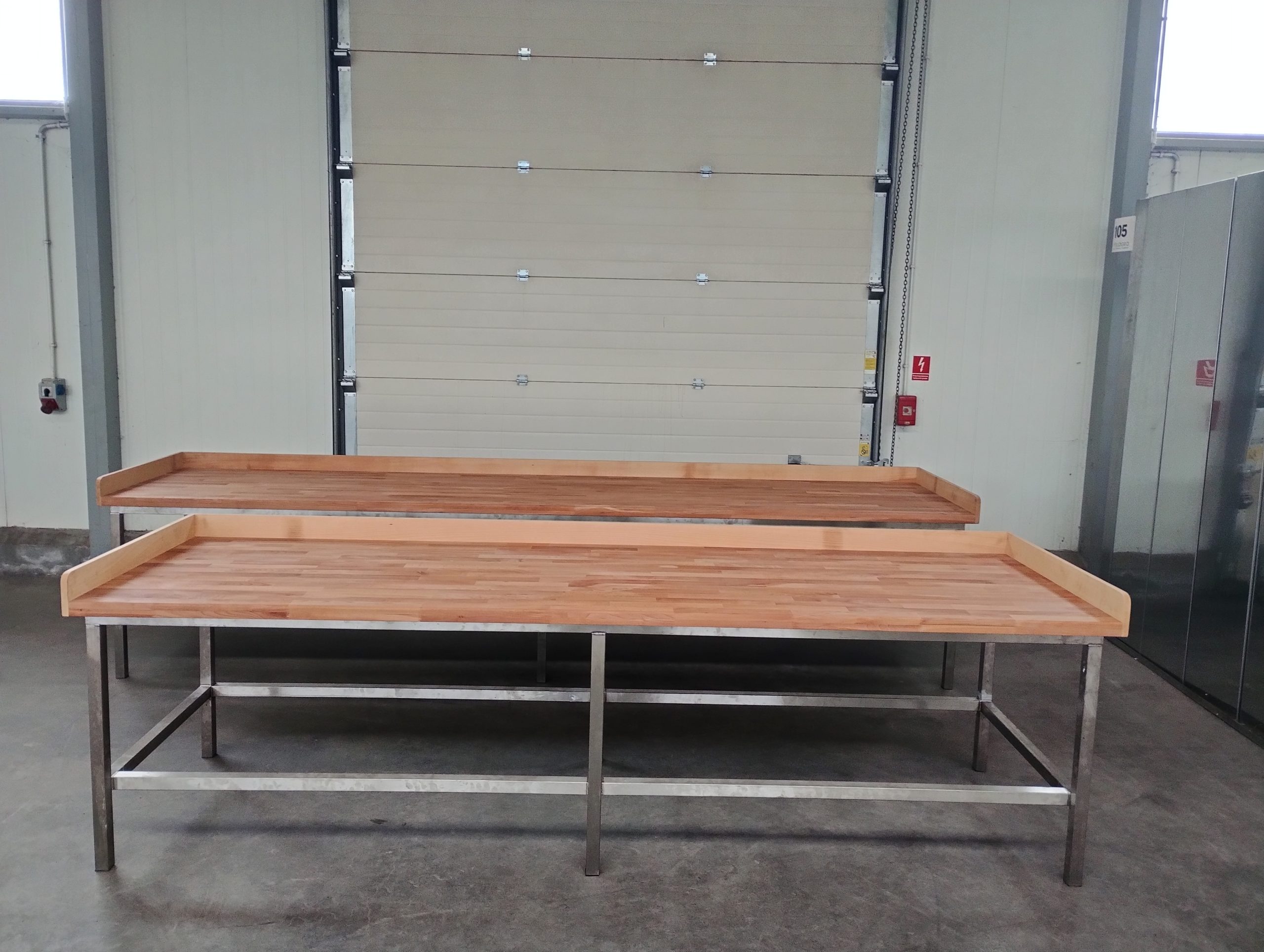 Stoły nierdzewne z blatami bukowymi